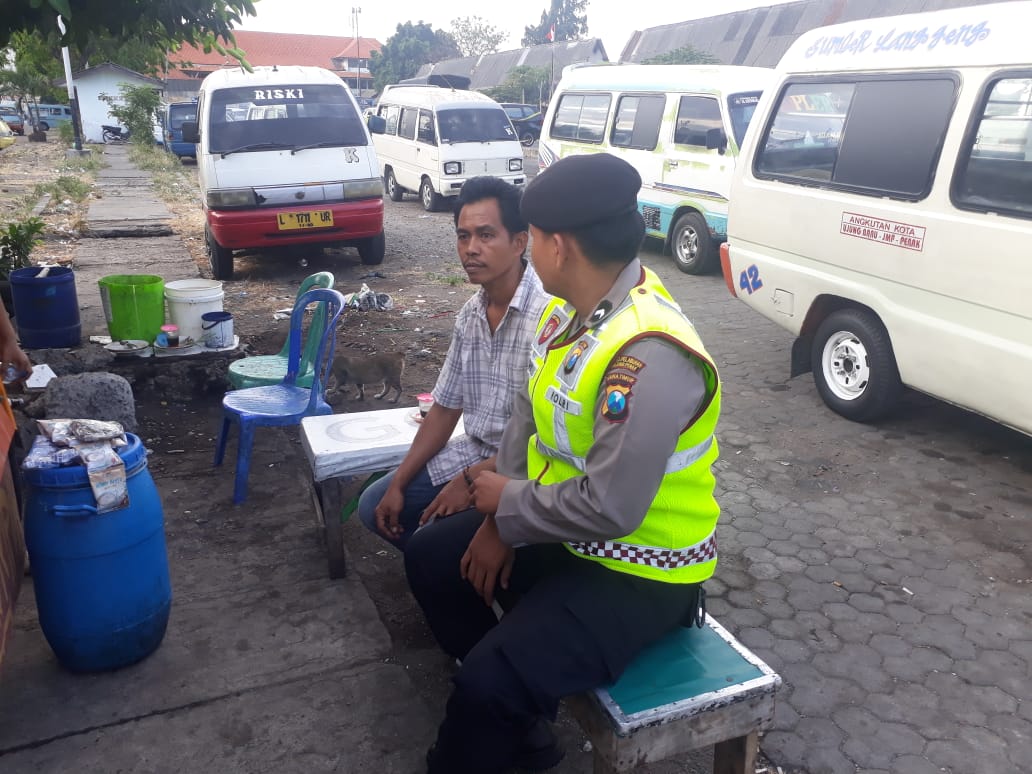 Personil Satsabhara saat itu tengah melakukan dialog dengan seorang warga yang tinggal di sekitar terminal, terkait waspada kriminalitas 3 C (Curat, Curas dan Curanmor).