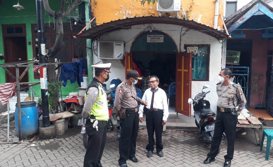 Seputarperak.com- Pengamanan kebaktian Jumat Agung dalam peringatan Paskah dilakukan personil Polsek Asemrowo, Polres Pelabuhan Tanjung Perak di Gereja Kristus Injil (GKI) Siloam, Jalan Simorejosari, Jumat pagi, 2 April 2021.
