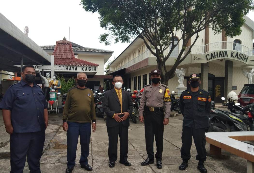 Seputarperak.com- Pengamanan kebaktian Paskah dilaksanakan Aiptu Tri Suhartono, Babinkamtibmas Sidotopo Wetan, Polsek Kenjeran, Polres Pelabuhan Tanjung Perak di Gereja Cahaya Kasih, Jalan Randu, Jumat pagi, 2 April 2021.