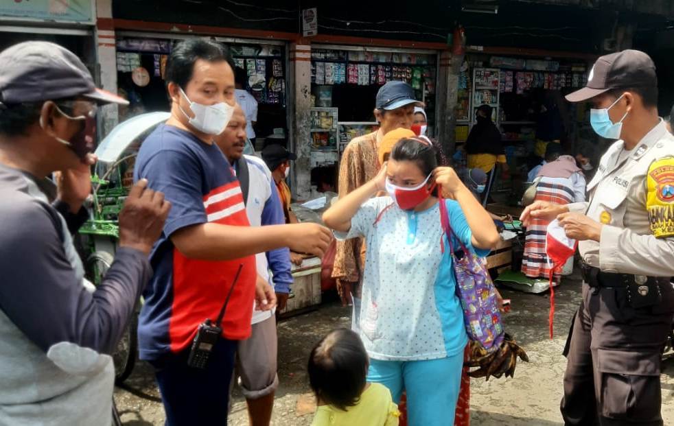 Untuk sasaran penerima masker adalah para pedagang, pengunjung dan orang-orang yang beraktifitas di lokasi. Termasuk penarik becak.