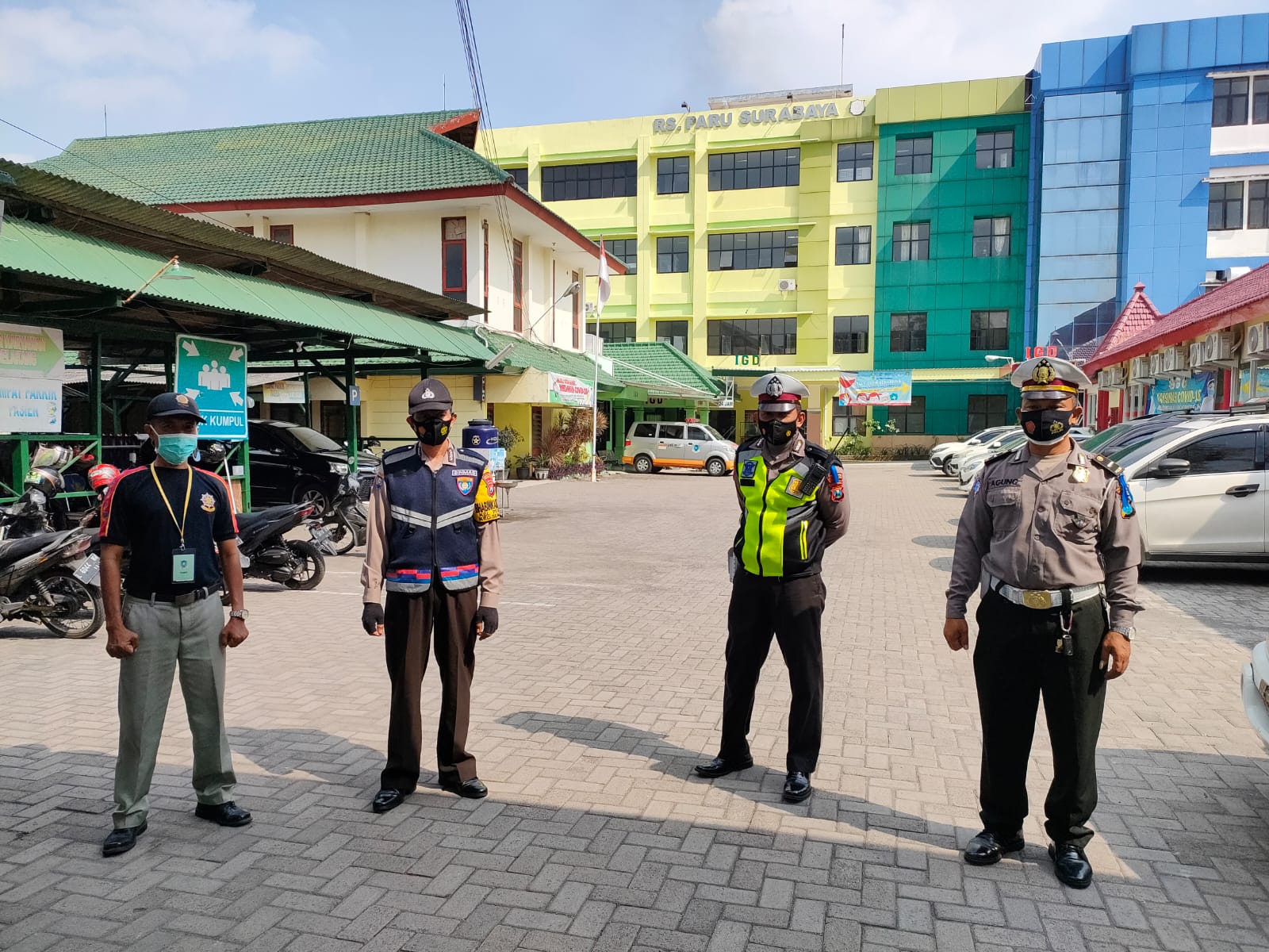 Seputarperak.com- Personil Polsek Semampir, Polres Pelabuhan Tanjung Perak melaksanakan patroli di Rumah Sakit Paru, Jalan Karang Tembok, Minggu siang, 18 April 2021.
