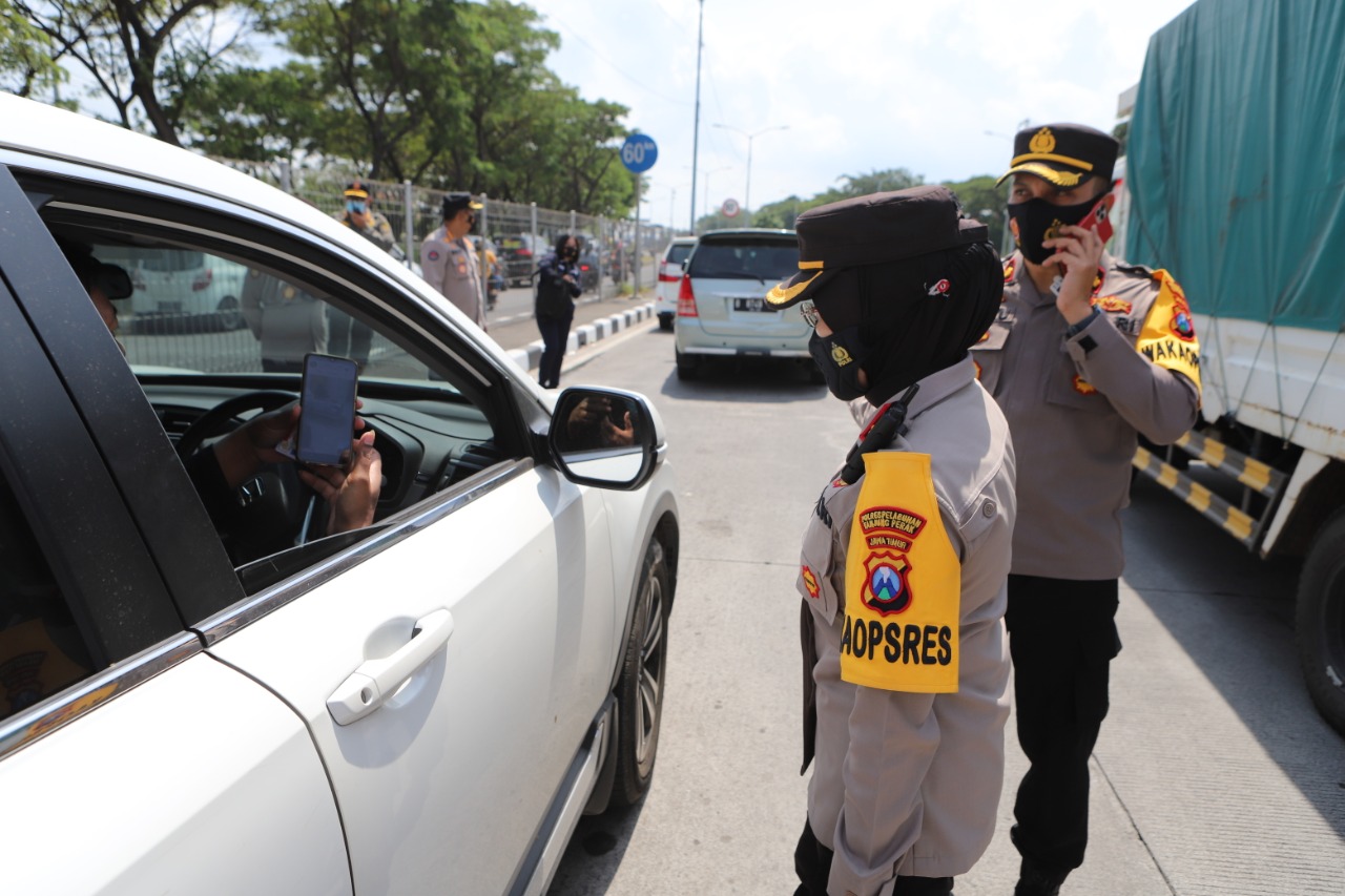 Dalam penyekatan ini hadir Dirsamapta Polda Jatim Kombes Pol Yudi Sumartono dan Kabid Humas Polda Jatim Kombes Pol Gatot Repli Handoko selaku Pamatwil.