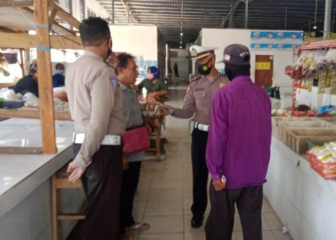 Masker gratis ini dibagikan kepada pengunjung dan pedagang yang kedapatan tidak menggunakan masker.