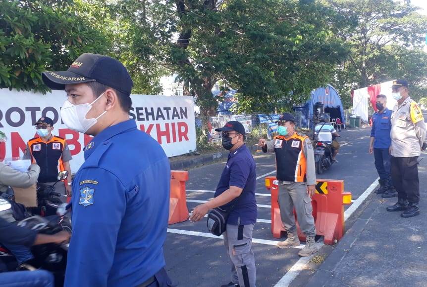 Seputarperak.com- Penyekatan dilaksanakan anggota gabungan Polres Pelabuhan Tanjung Perak, Polsek Kenjeran dan instansi samping lainnya di Jalan HM Noer, Rabu pagi, 12 Mei 2021.