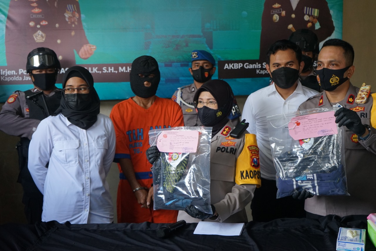Dihadapan wartawan, pelaku yang kini telah diamankan dihadirkan bersama sejumlah barang bukti.