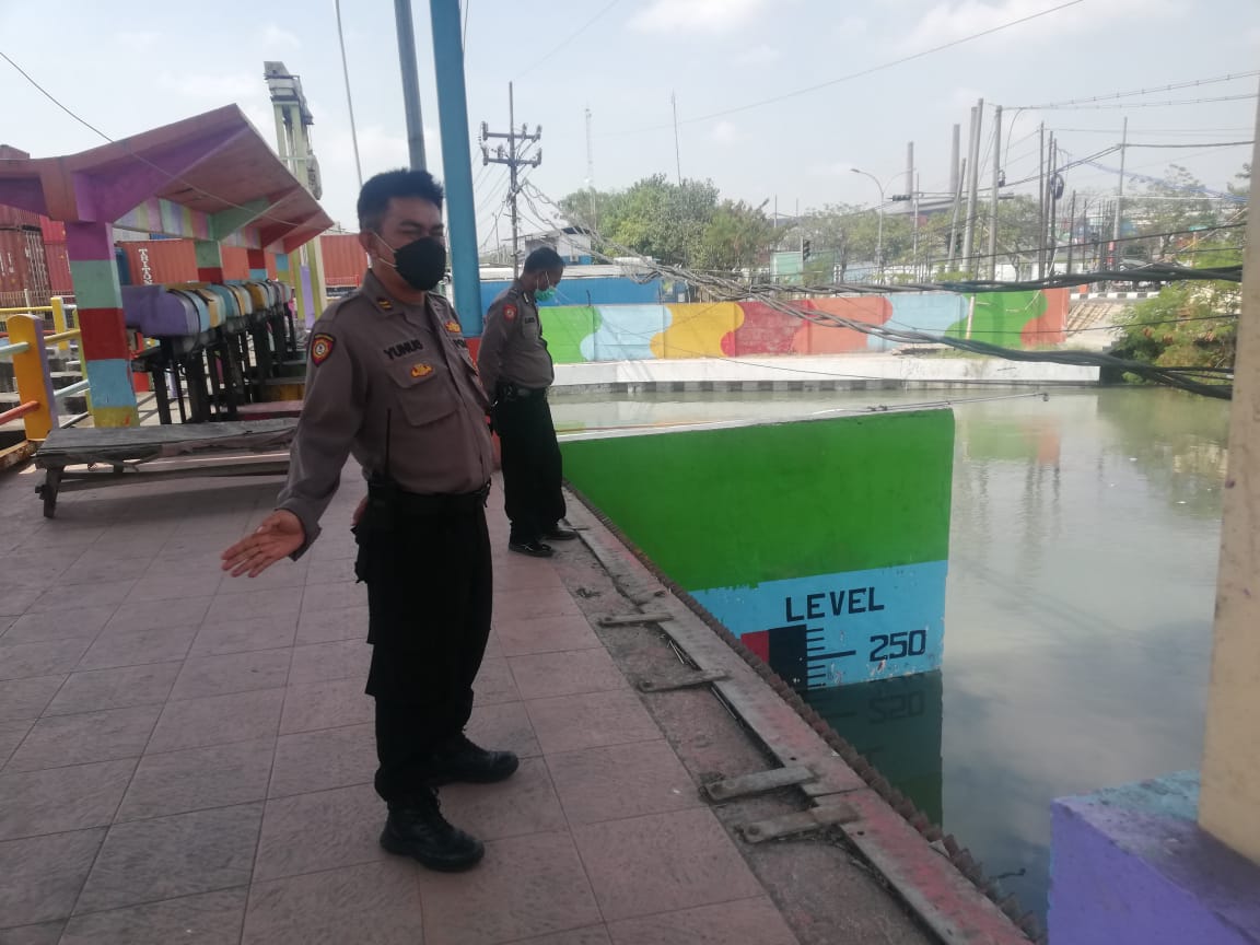 Seputarperak.com- Pemantauan debit air dilakukan personil Polsek Asemrowo, Polres Pelabuhan Tanjung Perak di Rumah Pompa Balong 2, Kelurahan Tambah Sarioso, Sabtu siang, 12 Juni 2021.