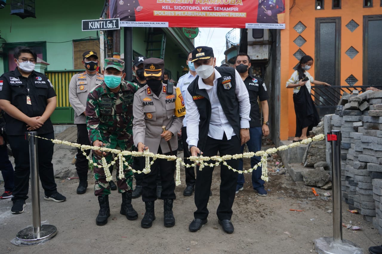 Seputarperak.com- Kapolres Pelabuhan Tanjung Perak, AKBP Ganis Setyaningrum, S.Si, MH bersama Walikota Surabaya Bapak Eri Cahyadi, melauncing Kampung Tangguh Narkoba, Rabu, 16 Juni 2021.