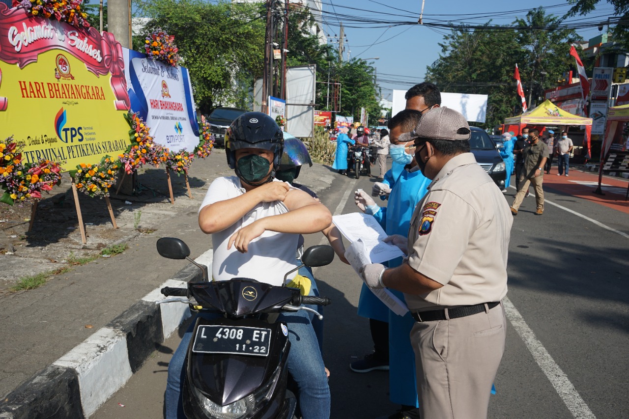Seputarperak.com- Pelaksanaan vaksinasi massal drive thru digelar kembali di Polres Pelabuhan Tanjung Perak, Kamis, 1 Juli 2021.