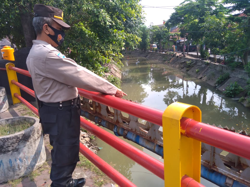 Seputarperak.com- Pemantauan debit air dilakukan personil Polsek Semampir, Polres Pelabuhan Tanjung Perak di Sungai Pegirian, Senin, 5 Juli 2021.
