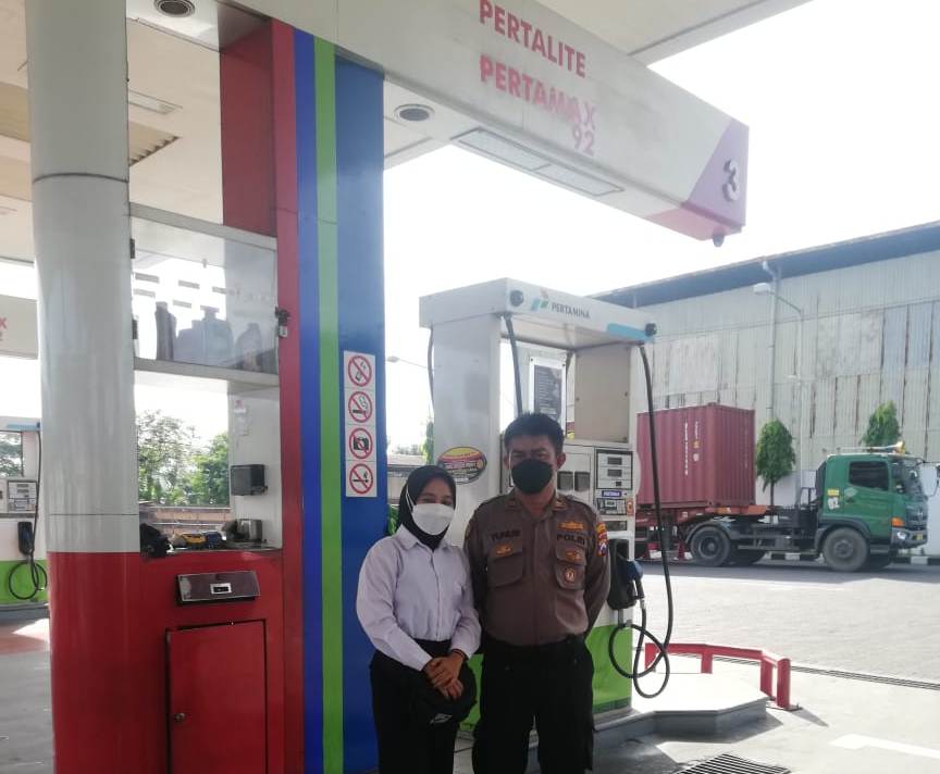 Seputarperak.com- Patroli dilakukan personil Polsek Asemrowo, Polres Pelabuhan Tanjung Perak di SPBU Jalan Margomulyo, Selasa siang, 6 Juli 2021.