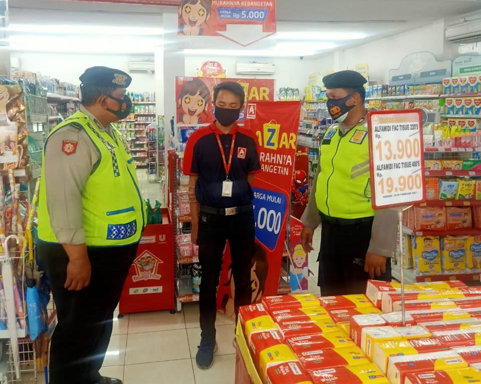 Seputarperak.com- Kunjungan dilakukan personil Polsek Krembangan, Polres Pelabuhan Tanjung Perak di mini market Alfamart, Jalan Demak, Minggu siang, 1 Agustus 2021.