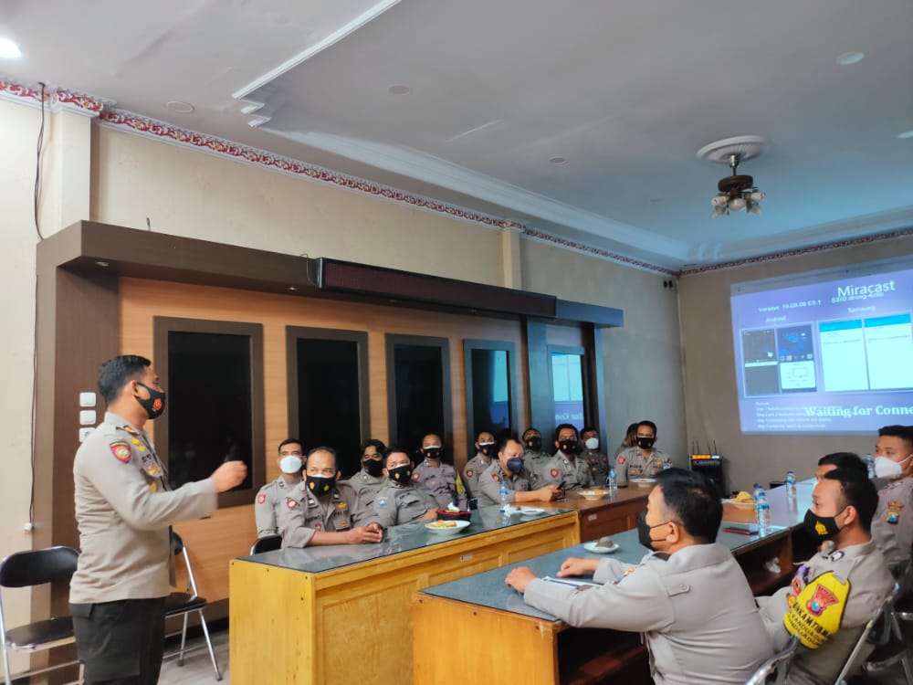 Pelatihan Penggunaan Aplikasi Silacak-Kemenkes Dan InaRISK Kepada Tracer Digital Polres Lumajang dilaksanakan di Ruang Eksekutif Polres Lumajang, Selasa (3/8/2021) malam.