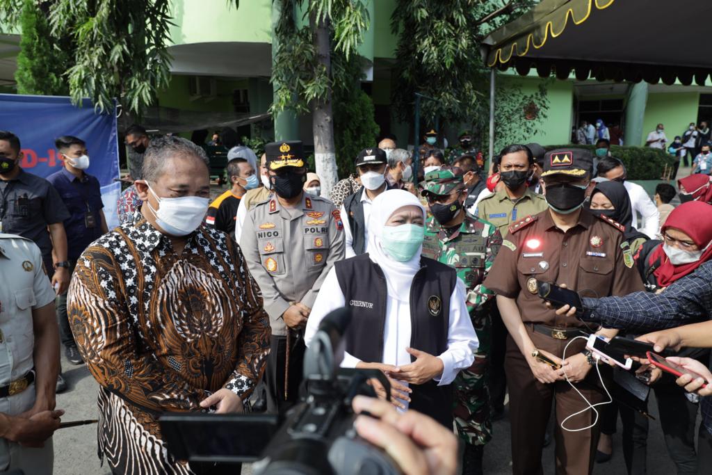 Gubernur Jatim Khofifah Indar Parawansa mengatakan, percepatan vaksinasi ini tenaga kesehatannya dari Walikota Surabaya dan Vaksinnya dari Pemprov Jatim.