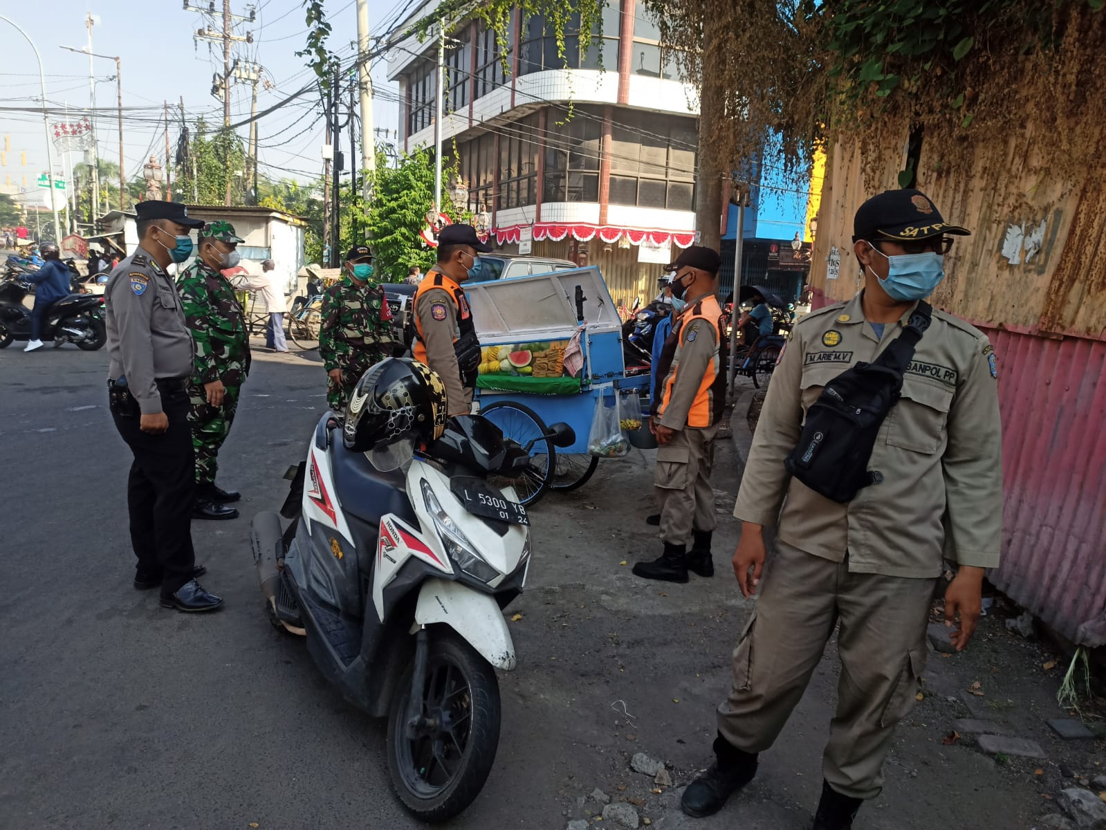 Seputarperak.com- Personil Polsek Pabean Cantikan bersama anggota Koramil mengawal operasi penertiban pedagang kaki lima (PKL) yang dilakukan anggota Satpol PP, Rabu pagi, 25 Agustus 2021.