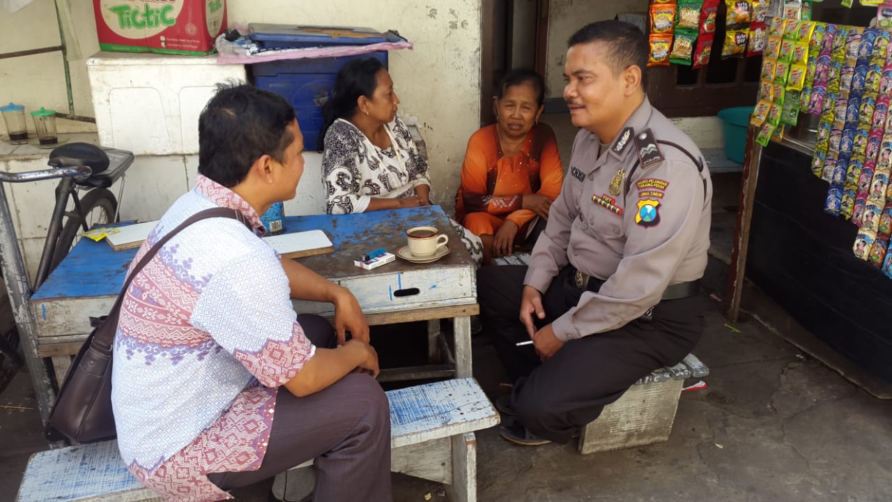 Disela-sela aktivitasnya, Aiptu M Yasin menyempatkan beristirahat di sebuah warung. Disana dia bertemu beberapa warga, termasuk Bapak Suwandi dan dua orang ibu-ibu.