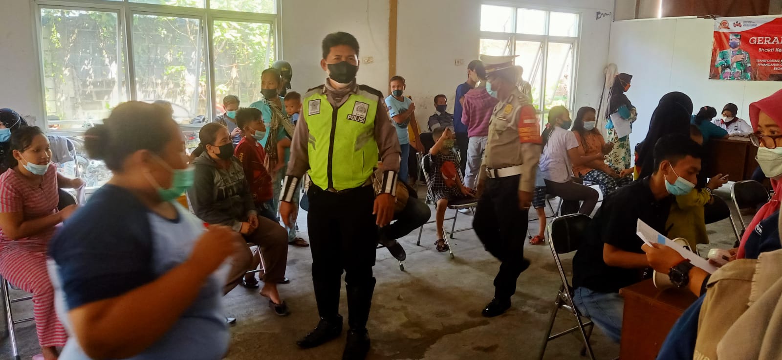 Untuk menjaga kelancaran vaksinasi, sejumlah personil Polsek Asemrowo diterjunkan yang dipimpin langsung Kapolsek Asemrowo, Kompol Hari Kurniawan.