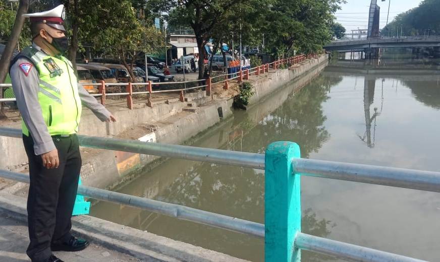 Seputarperak.com- Pemantauan debit air dilakukan personil Polsek Pabean Cantikan, Polres Pelabuhan Tanjung Perak di Sungai Kalimas, Jumat siang, 10 September 2021.