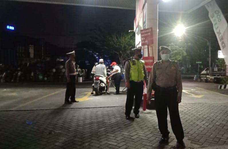 Seputarperak.com- Personil Polsek Pabean Cantikan, Polres Pelabuhan Tanjung Perak melaksanakan patroli di SPBU Jalan Stasiun Kota, Sabtu malam, 11 September 2021.