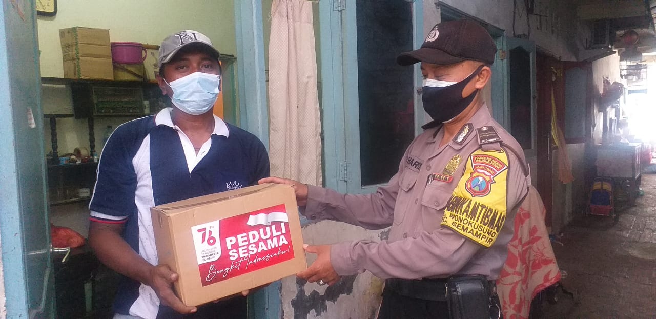 Seputarperak.com- Bantuan Sembako diberikan Aiptu Hari Kurniawan, Babinkamtibmas Wonokusumo, Polsek Semampir, Polres Pelabuhan Tanjung Perak kepada warga Wonosari Tegal, Kelurahan Wonokusumo, Minggu, 12 September 2021.