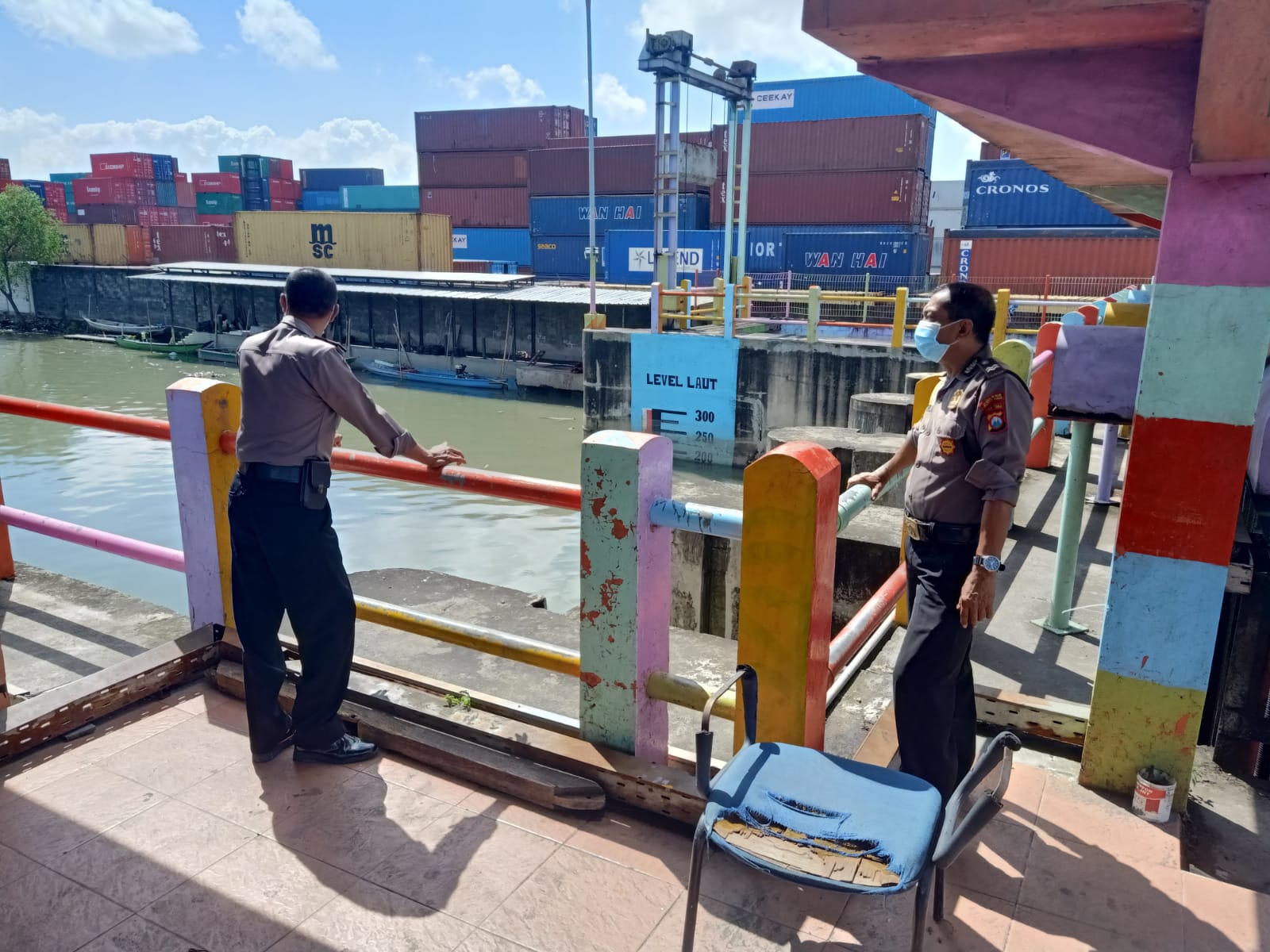 Seputarperak.com- Pemantauan debit air dilaksanakan personil Polsek Asemrowo, Polres Pelabuhan Tanjung Perak di Rumah Pompa Balong 2, Kelurahan Tambak Sarioso, Jumat, 17 September 2021.