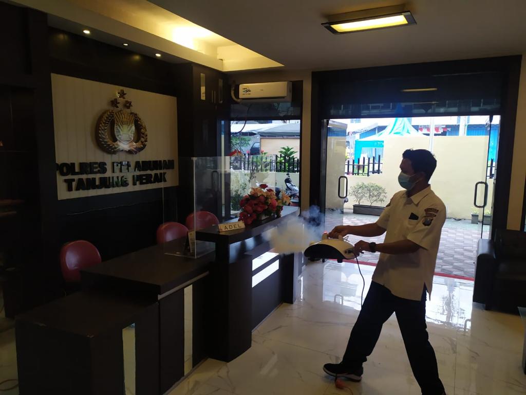 Seputarperak.com- Fogging disinfektan dilaksanakan Urkes Polres Pelabuhan Tanjung Perak, Jumat pagi, 24 September 2021.