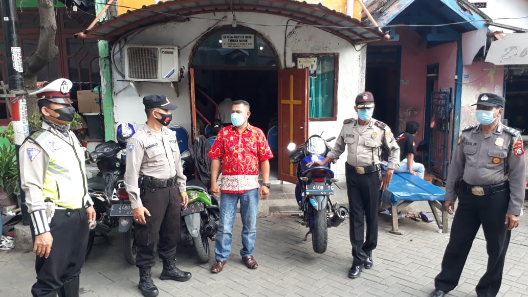 Seputarperak.com- Pengamanan kebaktian digelar personil Polsek Asemrowo, Polres Pelabuhan Tanjung Perak di Gereja Kristus Injil (GKI) Siloam, Jalan Simorejosari, Minggu pagi, 26 September 2021.