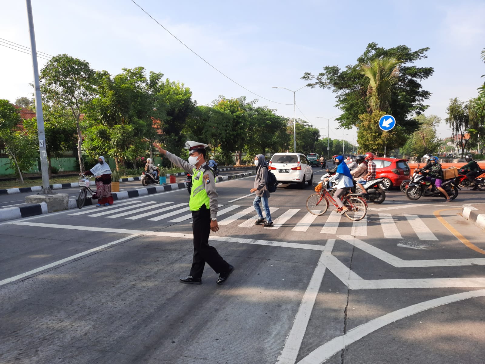 Pengaturan dimulai pada pukul 06.00 hingga pukul 07.10 ditengah kepadatan arus lalu lintas.