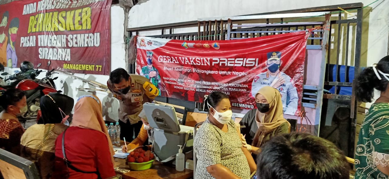 Kapolsek Asemrowo KOMPOL Hari Kurniawan mengatakan, vaksinasi ini diprioritaskan terlebih dahulu untuk warga berdomisili di Jl. Tanjung Sari No.77 (Pasar Buah) Kel. Asemrowo Kec. Asemrowo Surabaya.