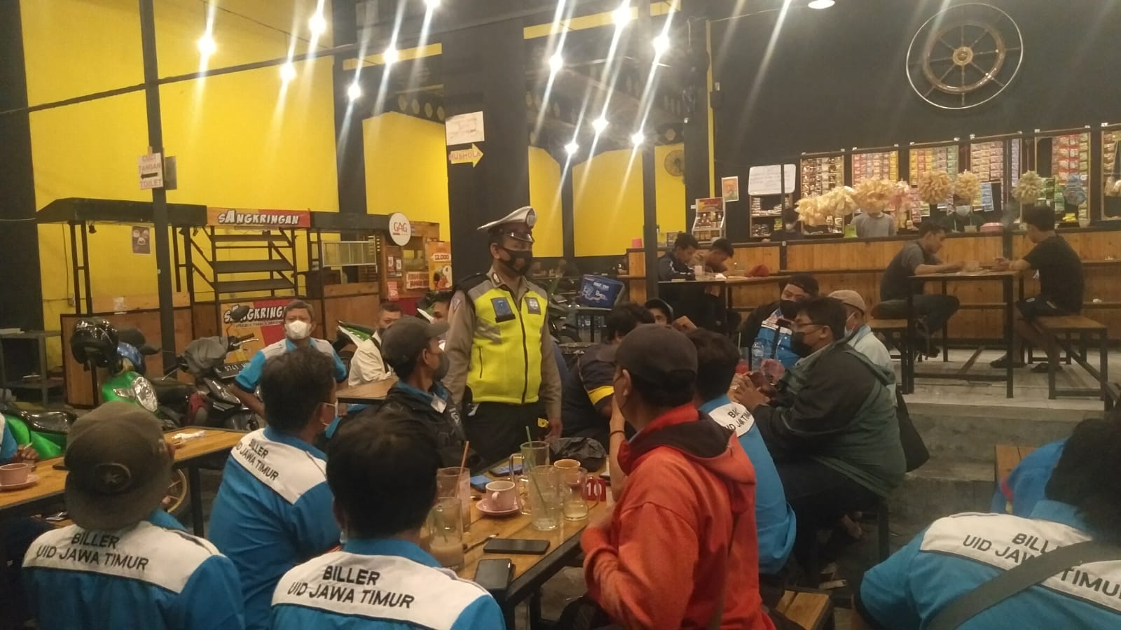 Seputarperak.com- Patroli dilakukan personil Polsek Krembangan, Polres Pelabuhan Tanjung Perak di warung kopi (Warkop) yang ada di wilayahnya, Minggu malam, 31 Oktober 2021.