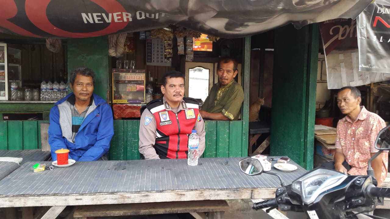 Dalam kunjungannya ke warung kopi di Jalan Kebalen Barat, Aiptu M Yasin menyampaikan pesan-pesan kamtibmas kepada warga.