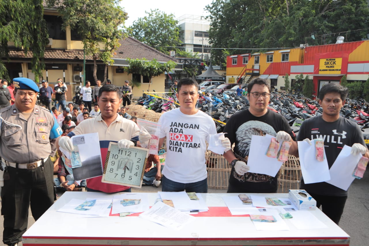 Dalam konferensi pers yang digelar Minggu sore di lapangan apel, Kapolres Pelabuhan Tanjung Perak, AKBP Antonius Agus Rahmanto, S.I.K, Msi menghadirkan para pelaku judi sabung ayam yang berhasil ditangkap.