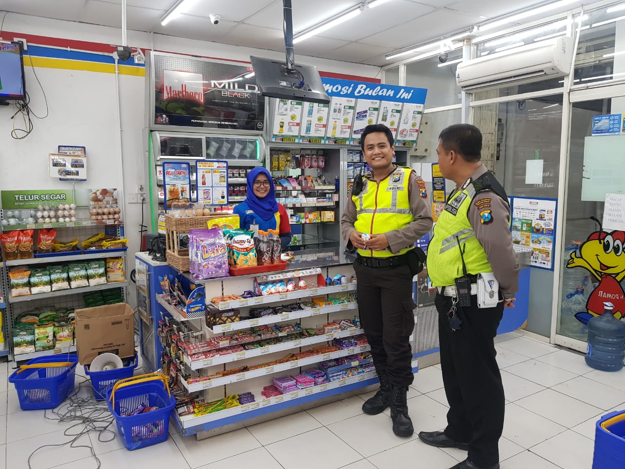 Patroli ini diisi kegiatan pemantauan sekeliling mini market untuk memastikan situasi tetap aman dan kondusif.