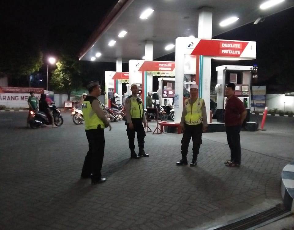 Salah satunya yang dilakukan personil gabungan Unit Lantas dan Unit Sabhara Polsek Semampir, di SPBU Jalan Dana Karya, Senin, 22 Oktober 2018.