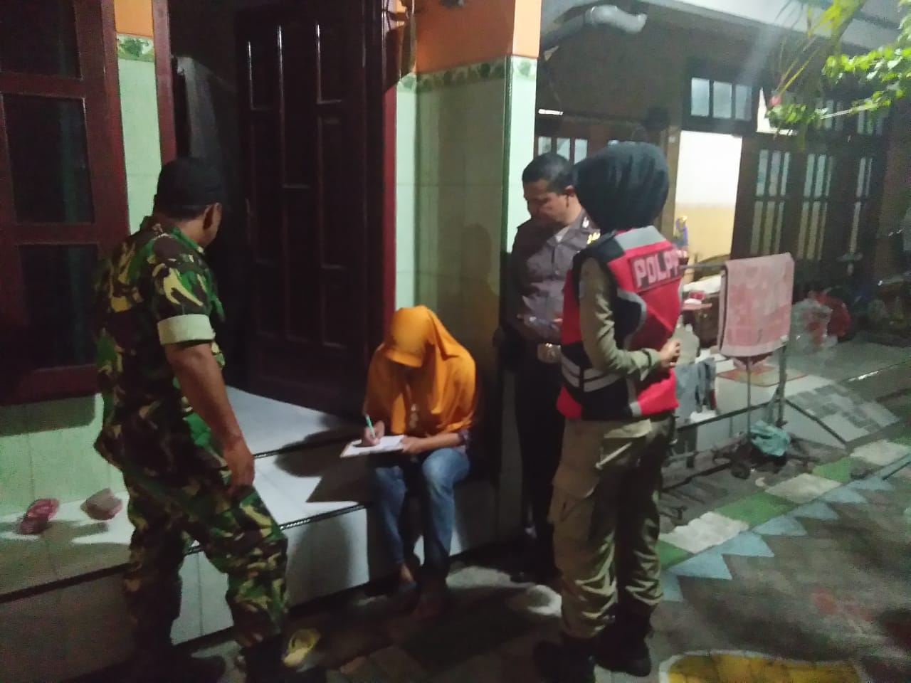 Satu persatu penghuni kos diperiksa dan didata identitasnya. Termasuk yang tinggal berpasangan juga diminta menunjukkan buku nikah serta KSK.