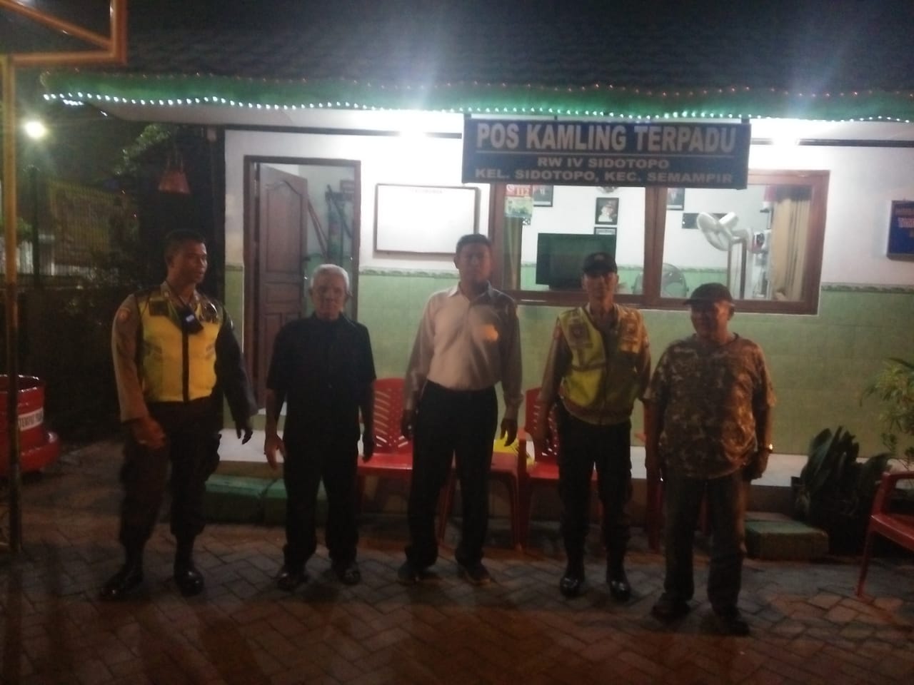 Patroli ini dilakukan personil Unit Lantas dan Unit Sabhara Polsek Semampir, sambil memberikan tips-tips pengamanan kepada warga yang sedang melaksanakan kegiatan Siskamling.