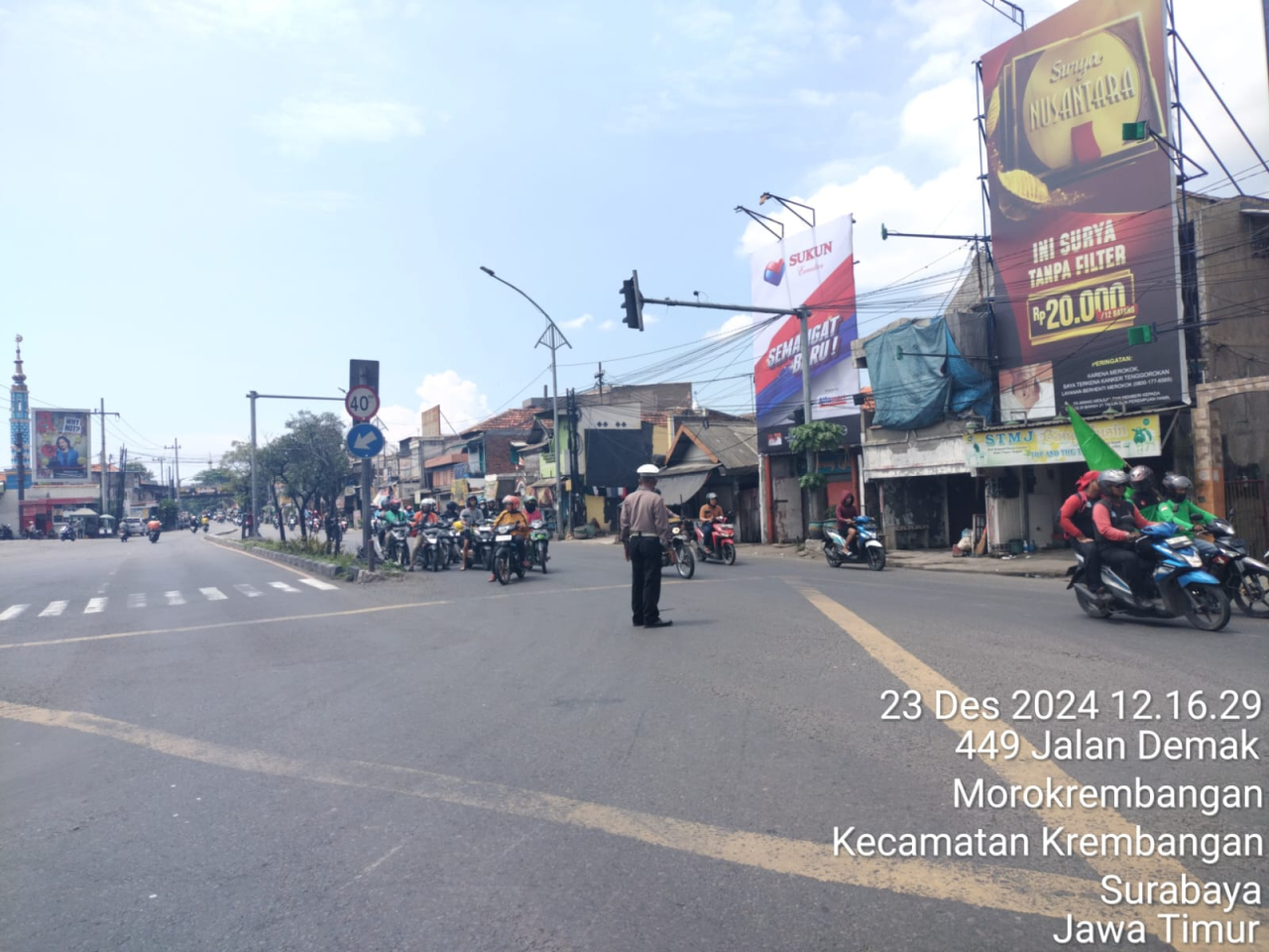 Polsek Krembangan Laksanakan Pengamanan Jalur dan Pengaturan Lalu Lintas di Simpang Tiga Mbah Ratu
