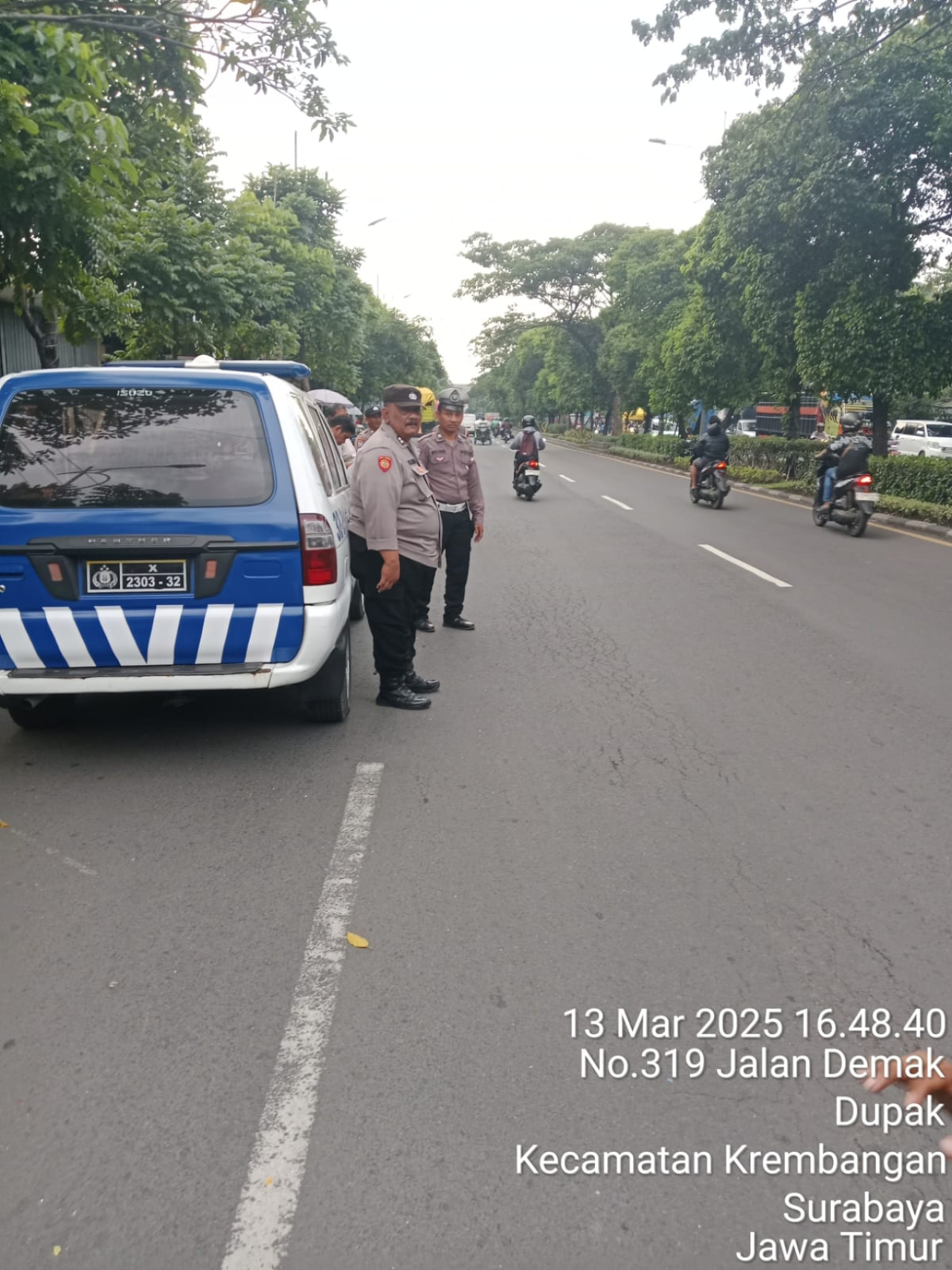 Seputarperak.com – Personel Polsek Krembangan bersama piket fungsi melaksanakan kegiatan patroli dan pengamanan guna mengantisipasi aktivitas masyarakat saat ngabuburit menjelang buka puasa di depan Masjid Nurul Fattah, Jalan Demak No. 319, Kelurahan Morokrembangan, Kamis, 13 Maret 2025.
