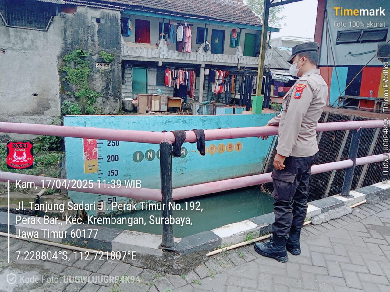 Seputarperak.com – Personil Polsek Krembangan melaksanakan kegiatan patroli rutin pemantauan debit air sungai di wilayah Jalan Tanjung Sadari, Kamis, 17 April 2025. Kegiatan ini dilakukan sebagai langkah preventif guna mengantisipasi potensi banjir dan kenaikan volume air yang bisa terjadi sewaktu-waktu akibat curah hujan tinggi.