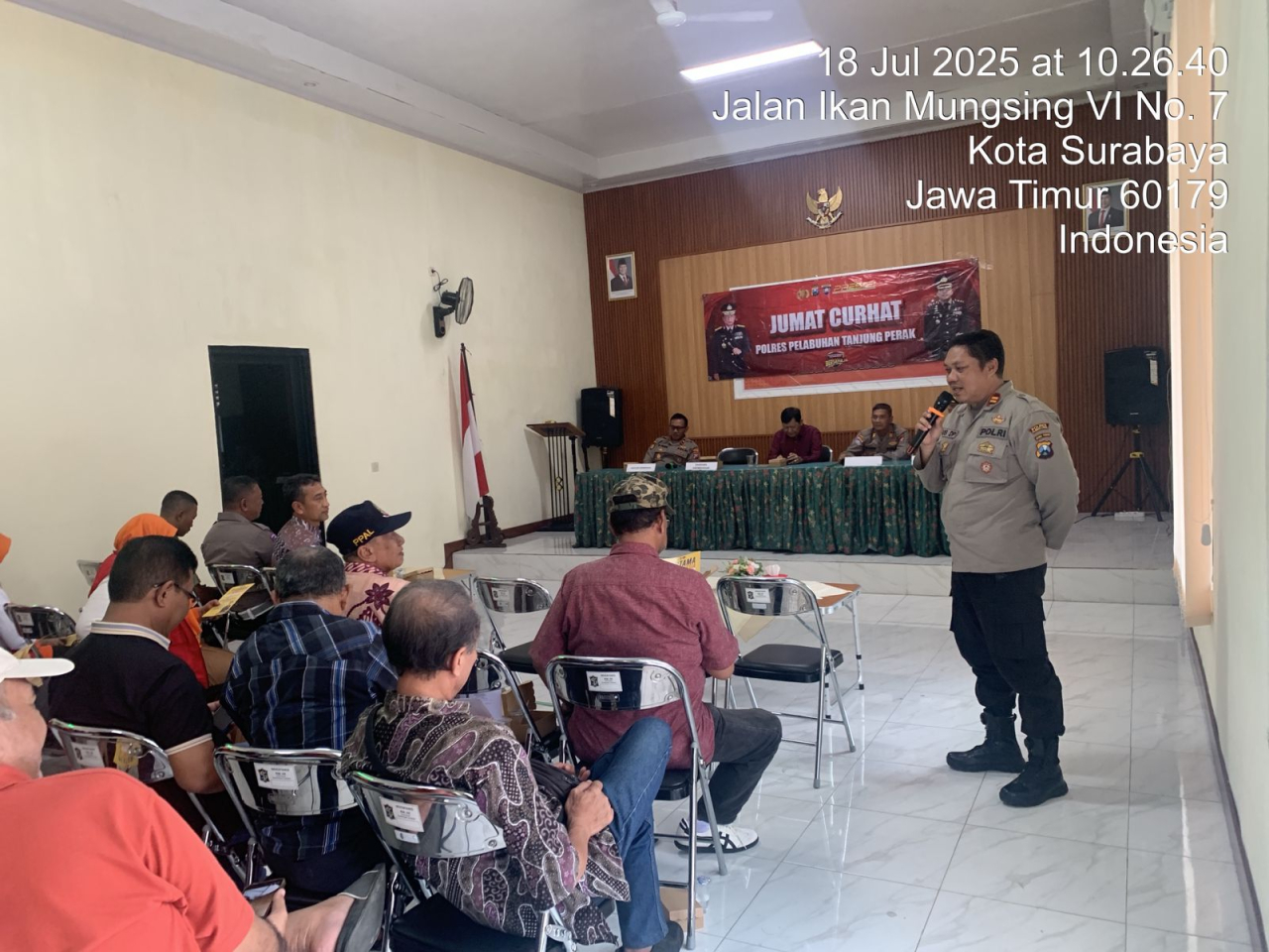 Seputarperak.com – Pada hari Jumat, 18 Februari 2025, kegiatan Jumat Curhat digelar di Gedung Balai RW 04 Jalan Ikan Mungsing I No. 1, Kelurahan Perak Barat, Kecamatan Krembangan, Kota Surabaya. Kegiatan ini berlangsung dari pukul 09.00 hingga 10.35 WIB dan dihadiri oleh jajaran kepolisian serta unsur Forkopimka dan tokoh masyarakat.