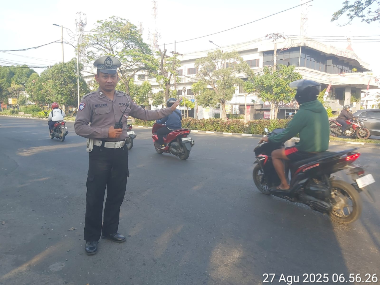 Dalam pelaksanaannya, petugas mengatur arus kendaraan agar tetap tertib dan lancar. Kehadiran polisi di lapangan juga memberikan rasa aman bagi pengguna jalan sekaligus mencegah potensi kemacetan yang sering terjadi pada pagi hari.