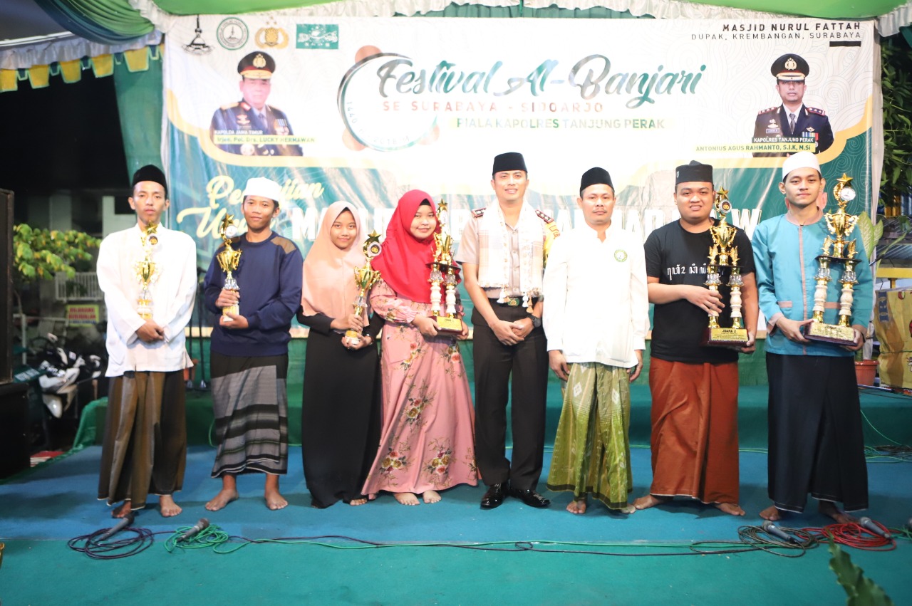 Seputarperak.com- Festival Al Banjari piala Kapolres Pelabuhan Tanjung Perak Cup berlangsung meriah Minggu malam, 25 Nopember 2018 di Jalan Demak depan Masjid Al Fatah. Acara ini dihadiri Kapolres Pelabuhan Tanjung Perak, AKBP Antonius Agus Rahmanto, S.I.K, Msi.