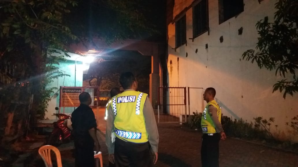 Selain memantau situasi keamanan lingkungan sekitar, personil Polsek Kenjeran juga menyampaikan pesan kamtibmas kepada petugas sekuriti yang tengah berjaga.