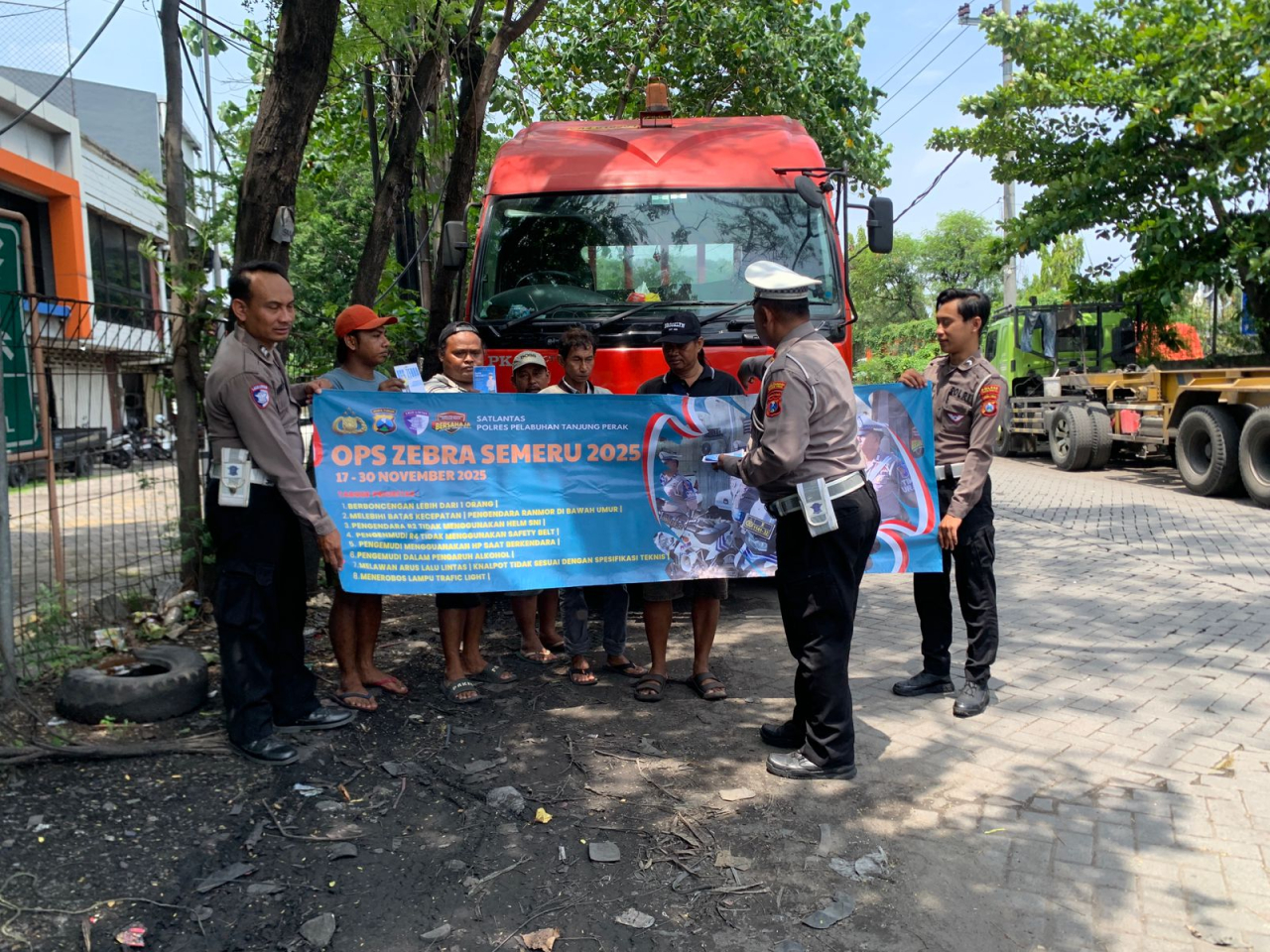 Seputarperak.com – Pada Kamis, 20 November 2025, personel Polsek Krembangan melaksanakan kegiatan sosialisasi kepada para sopir truk di kawasan Jalan Tanjung Batu. Kegiatan ini dilakukan dalam rangka mendukung pelaksanaan Operasi Zebra Semeru 2025 serta meningkatkan kepatuhan para pengemudi terhadap peraturan lalu lintas.