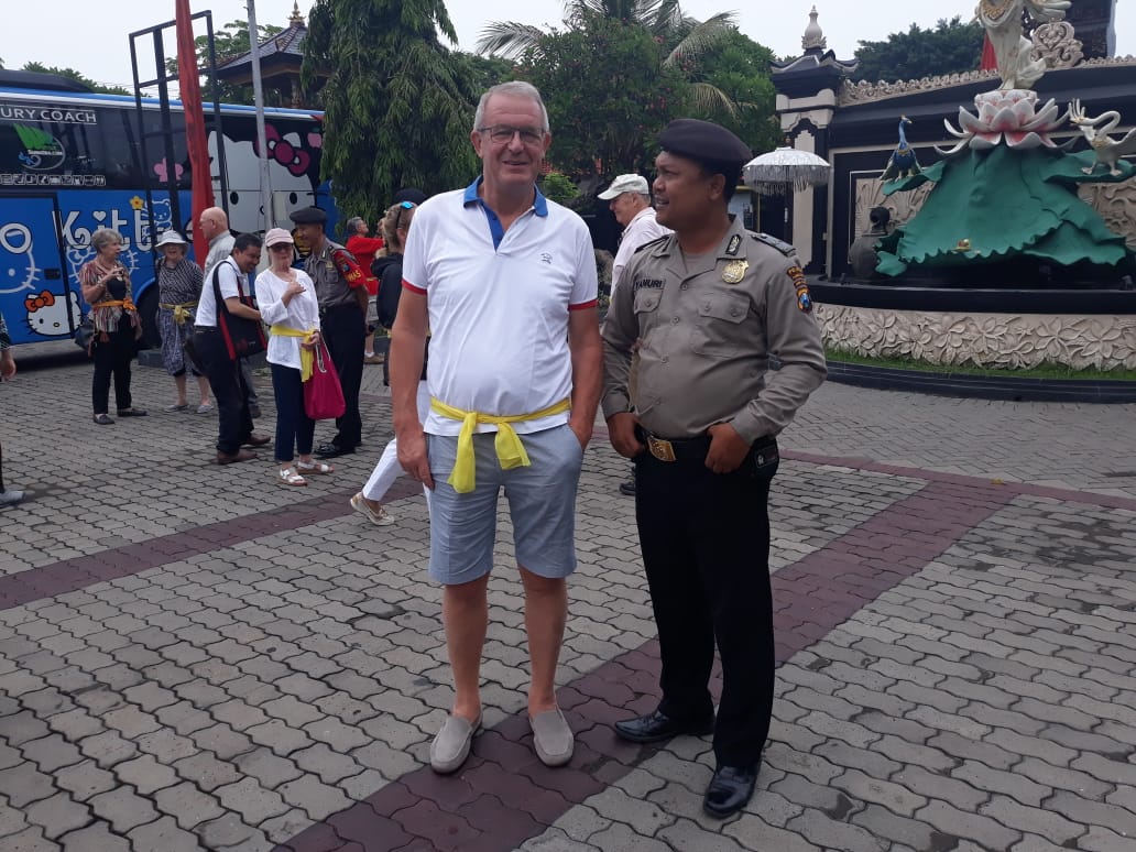 Seputarperak.com- Pengamanan kunjungan turis asing di Pura Jagad Kirana, Jalan Ikan Lumba-lumba dilakukan Aiptu Yanuri, Babinkamtibmas Perak Barat, Polsek Krembangan, Polres Pelabuhan Tanjung Perak, Jumat pagi, 30 Nopember 2018.