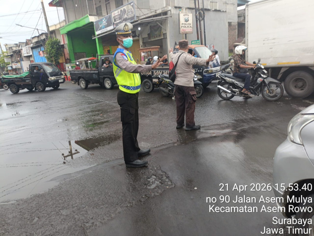 Seputarperak.com – Selasa, 21 April 2026 Personil Polsek Asemrowo melaksanakan kegiatan pos akhir di seputaran perlintasan kereta api Jalan Tambak Mayor sebagai upaya menjaga kelancaran arus lalu lintas serta memberikan pelayanan kepada masyarakat pengguna jalan.