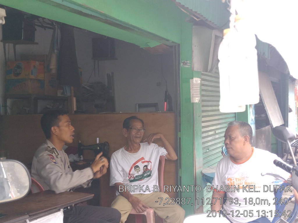 Diantaranya seperti yang dilakukan Bripka Busaryanto, Babinkamtibmas Dupak, Polsek Krembangan, saat mengunjungi tokoh masyarakat (tomas), Bapak Kayi, Rabu siang, 5 Desember 2018.