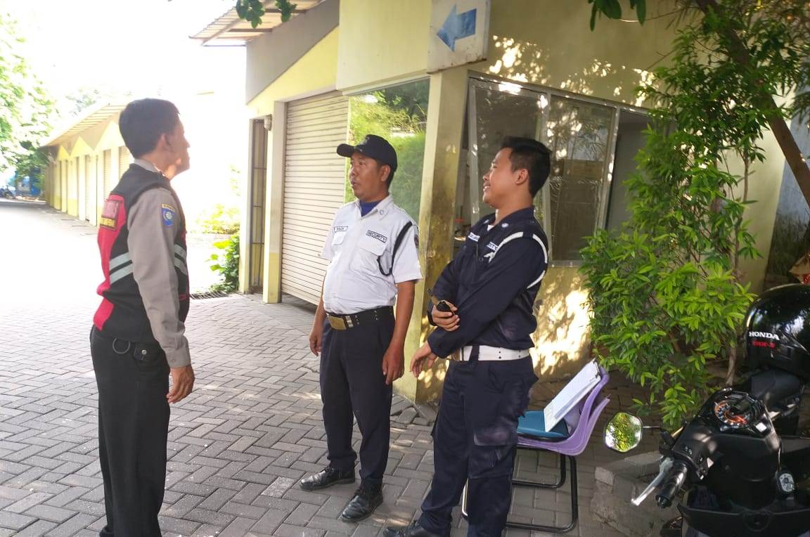 Seputarperak.com- Pesan keamanan disampaikan Aiptu Made Suarthana, Babinkamtibmas Bongkaran, Polsek Pabean Cantikan, Polres Pelabuhan Tanjung Perak kepada petugas sekuriti Hotel Pit Stop di Jalan Semut Baru, Jumat sore, 7 Desember 2018.
