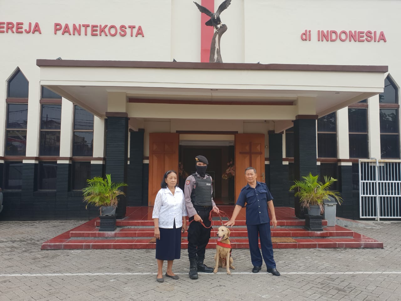 Saat itu sterilisasi dilakukan personil Unit Satwa Satsabhara bersama anjing pelacak pada pukul 06.00, didampini oleh petugas keamanan gereja.