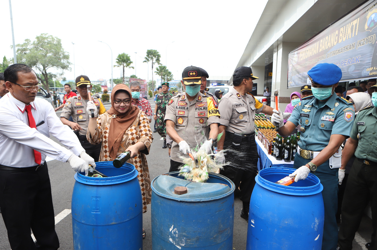 Jumlah tersebut terdiri dari arak cina 48 botol, bir 20 botol, bir kecil enam botol, bir kaleng delapan buah, bir hitam 28 botol, oplosan putih 120 botol, frost 24 botol, miras jenis Whisky 100 botol, cukrik 200 botol, Guines Foregul 48 botol, dan cukrik ukuran tanggung 400 botol.
