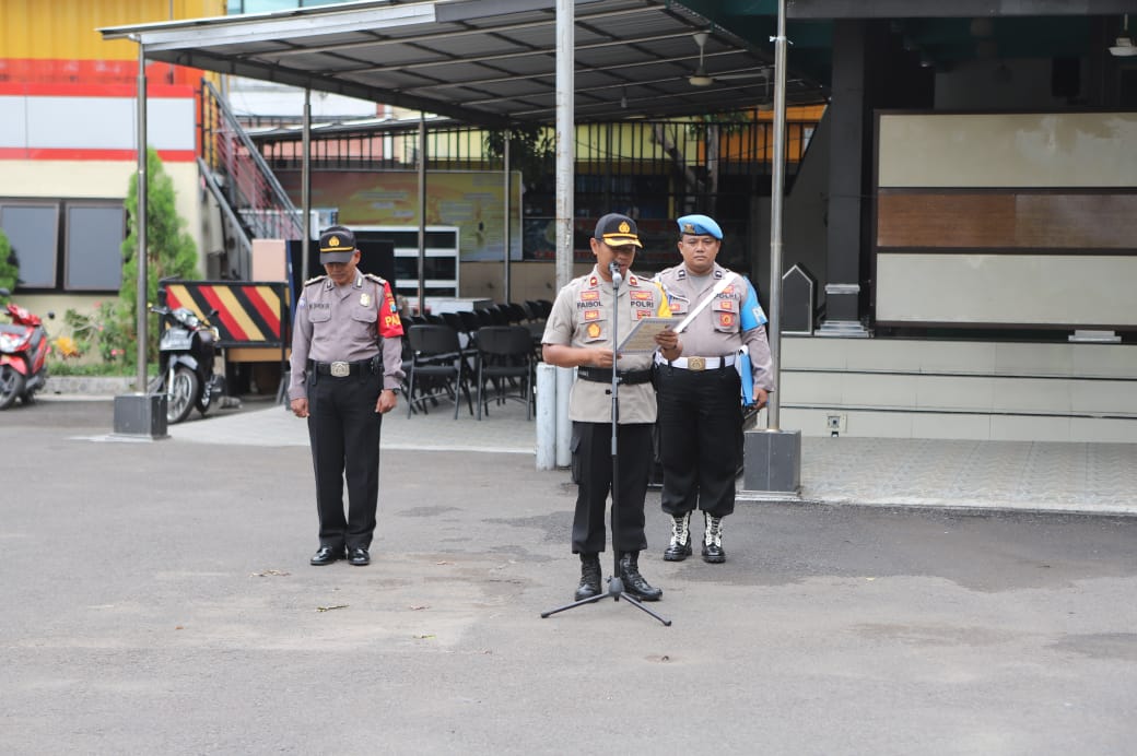 Dalam pesannya, Wakapolres menyampaikan agar semua personil meningkatkan kewaspadaan dalam menyambut Natal dan Tahun Baru 2019.
